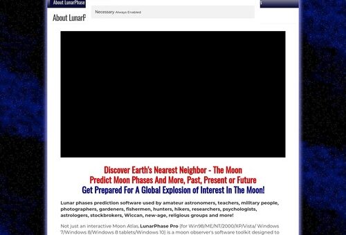 Lunar phases prediction software used by amateur astronomers, teachers, military people, photographers, gardeners, fishermen, hunters, hikers, researchers, psychologists, astrologers, stockbrokers, Wiccan, new-age, religious groups and more!