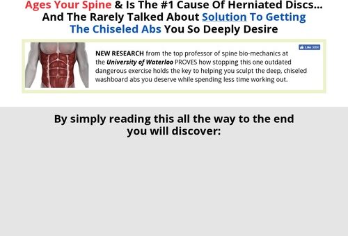NEW RESEARCH from the top professor of spine bio-mechanics at the University of Waterloo PROVES how stopping this one outdated dangerous exercise holds the key to helping you sculpt the deep, chiseled washboard abs you deserve while spending less time working out.
