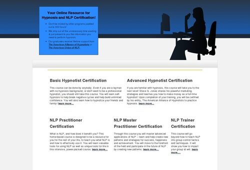 What is NLP, and how does it benefit you? This home-based course is designed to be a resource for you for the rest of your life, to teach you what NLP is and how to effectively use it. You will learn valuable tools for using NLP as well as unique tools for life in this intensive, power-packed course. learn more…