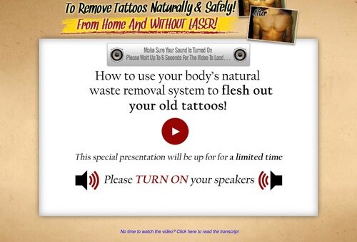 Product Name: The Laserless Tattoo Removal Guide ™ Free Video Reveals Shocking Method To Remove Tattoos Naturally and Safely From Home And Without Laser!